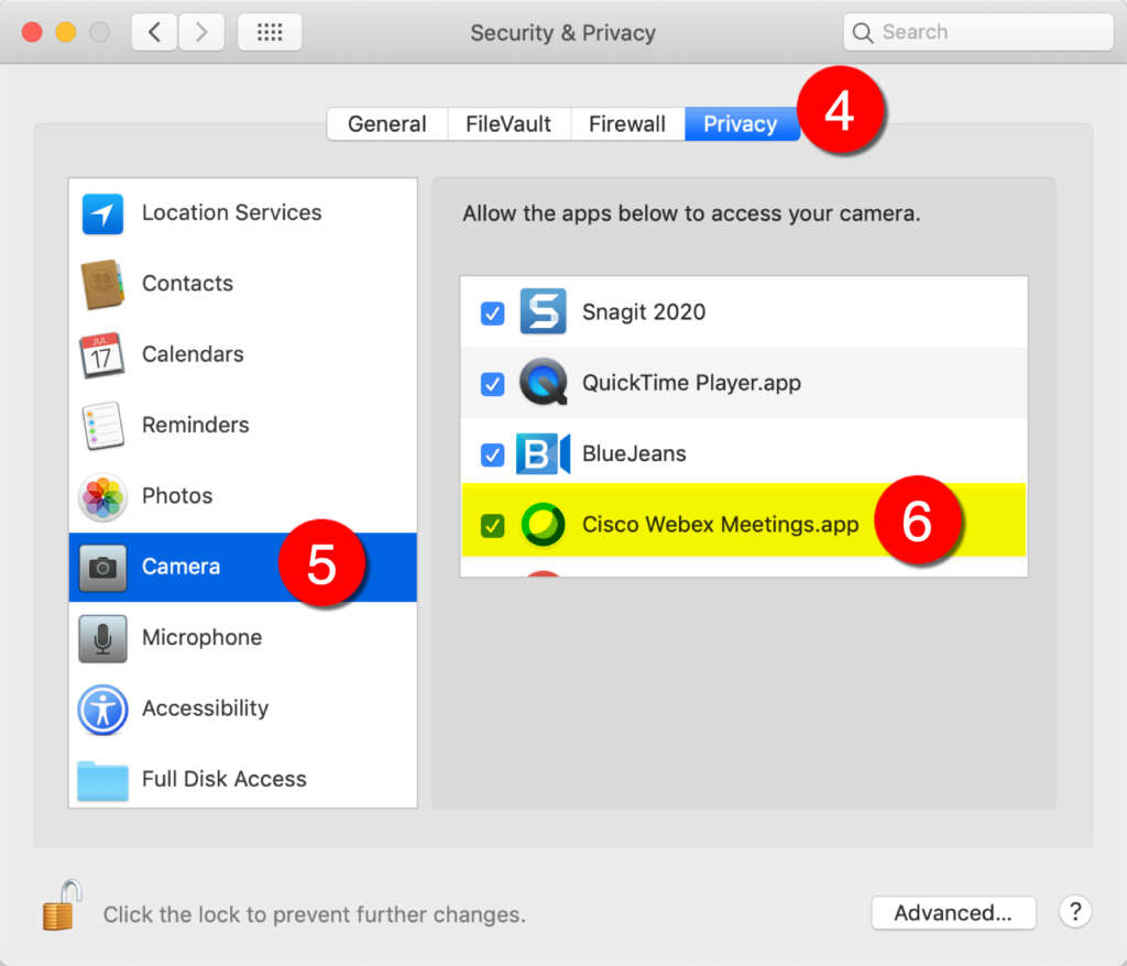 6). Make sure Cisco Webex Meetings.app is check marked in the list.