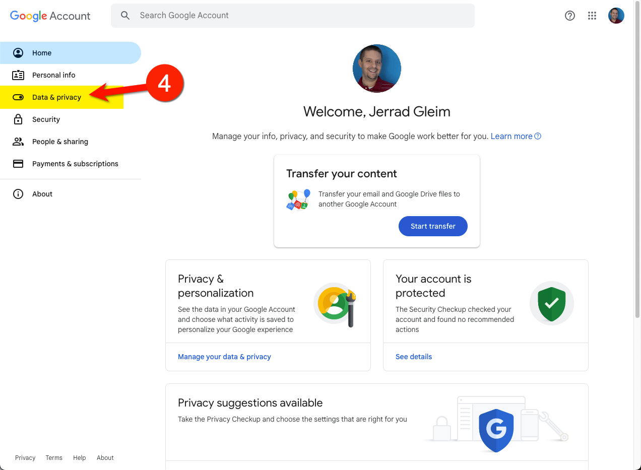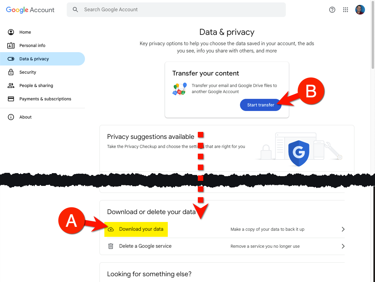 A). Download your data – Gmail, Drive, Calendar, Chrome, Classroom, Contacts, Photos, Keep, Maps, YouTube, & more.