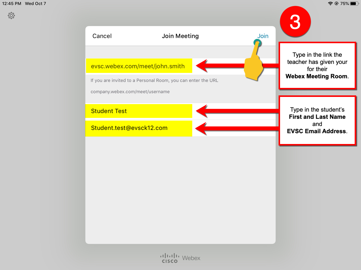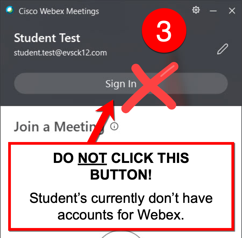 NOTE: Students don’t have Webex accounts so they’re going to join the meeting as a GUEST using their Name and Email address.