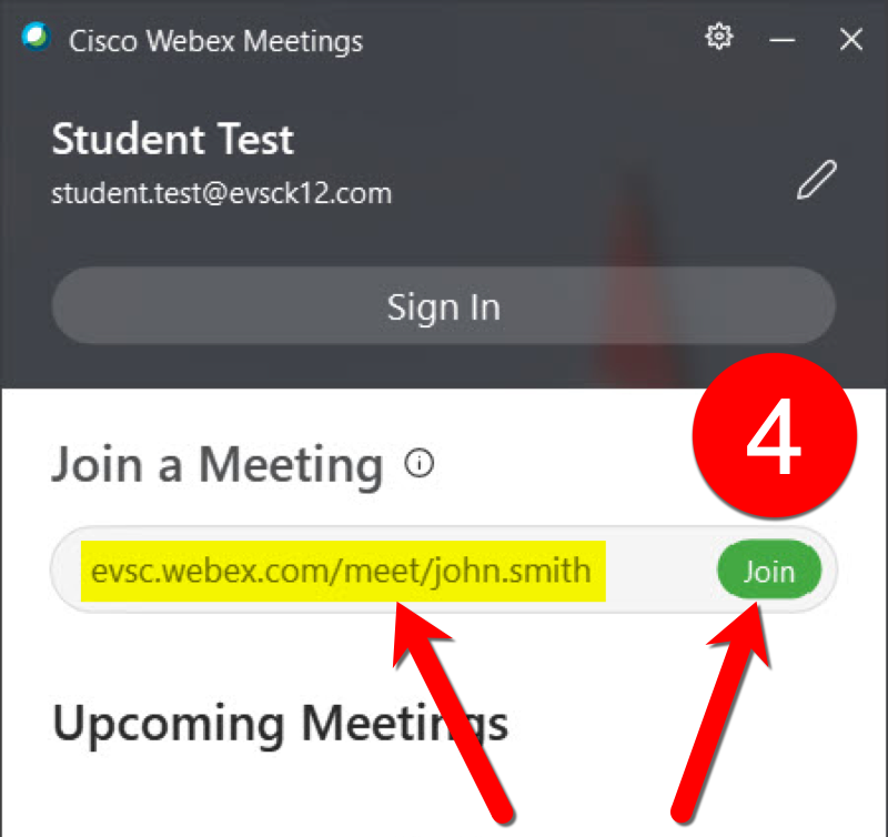 For example: evsc.webex.com/meet/john.smith
