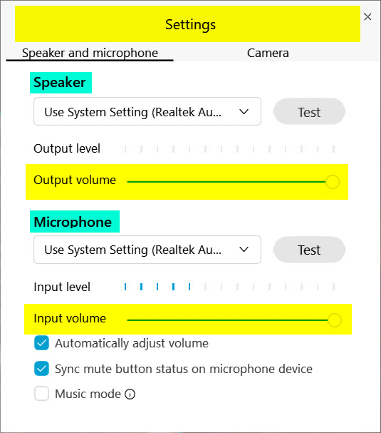 Click the caret icon in the Microphone button to reveal additional Audio options.