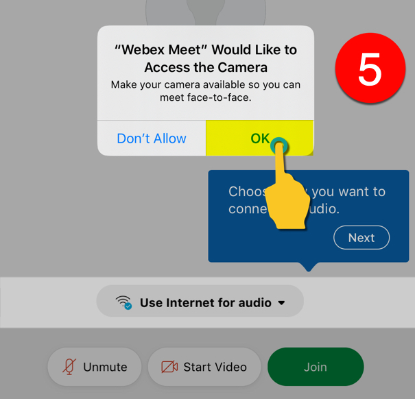 4 & 5). Give Webex Meet access to the iPad’s Microphone and Camera.