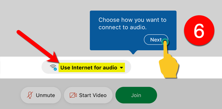 6). Make sure Use Internet for Audio is selected.