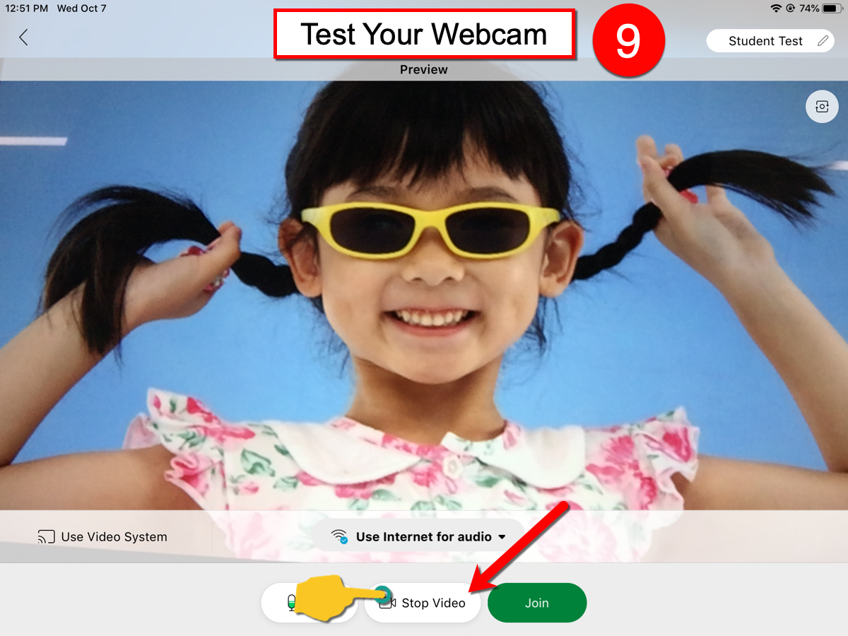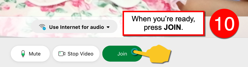 10). When you’re finished testing and are ready to join meeting, press the JOIN button.